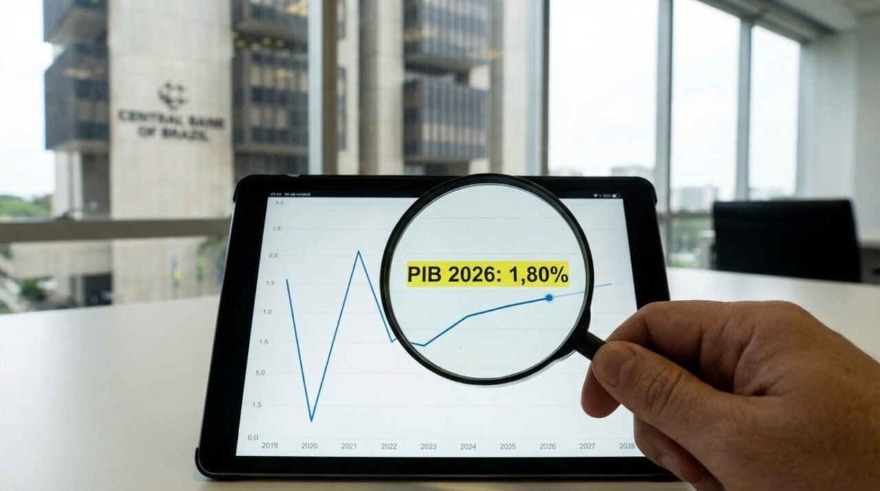 Economia Banco Central mantém projeção de 1,80% para o PIB de 2026 no Focus, sinal de... Valdemar Medeiros 18/02/2026 às 18:22