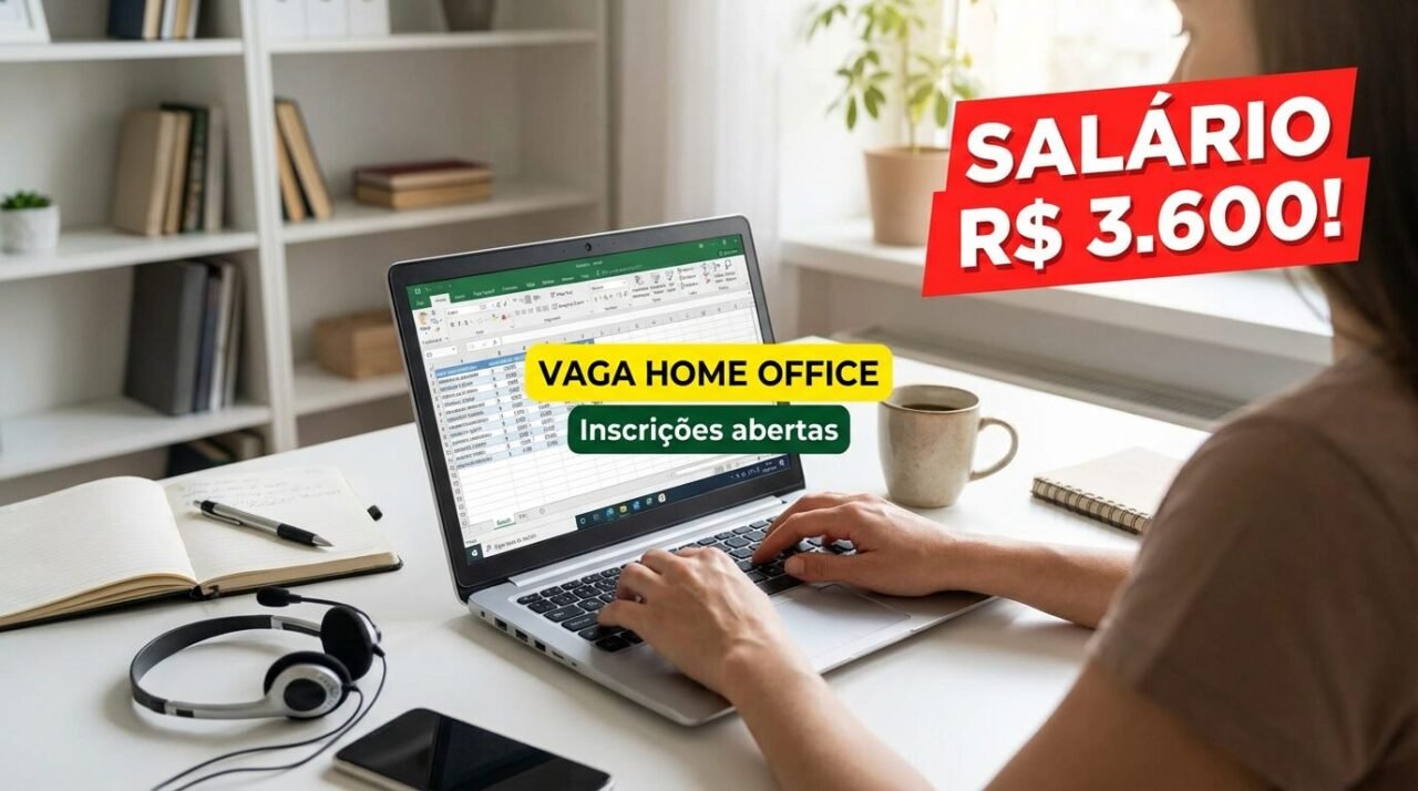 Oportunidade home office para auxiliar administrativo, salário de R$ 3.600 e exigência de ensino médio