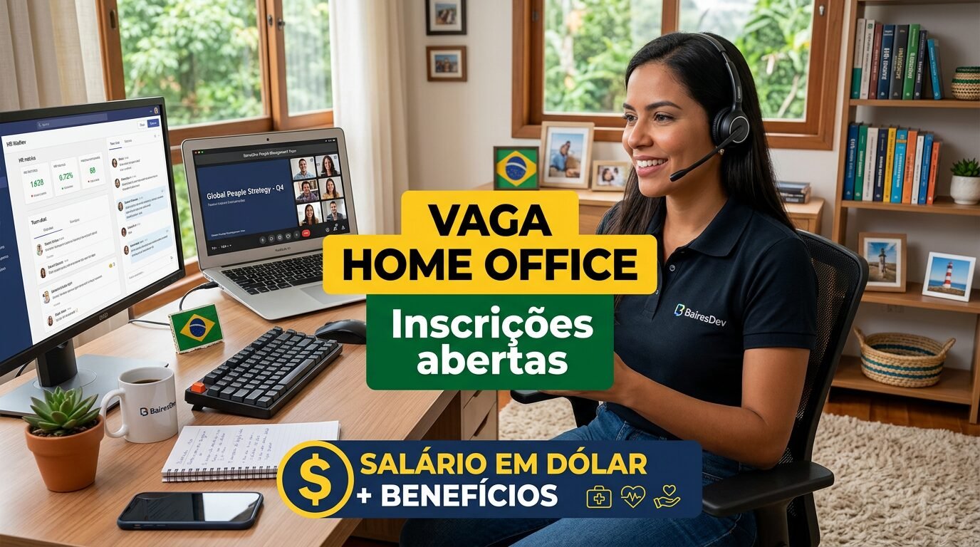 A lista de benefícios chama atenção por combinar flexibilidade e alcance internacional. A BairesDev oferece modalidade 100% remota, permitindo trabalhar de qualquer lugar.