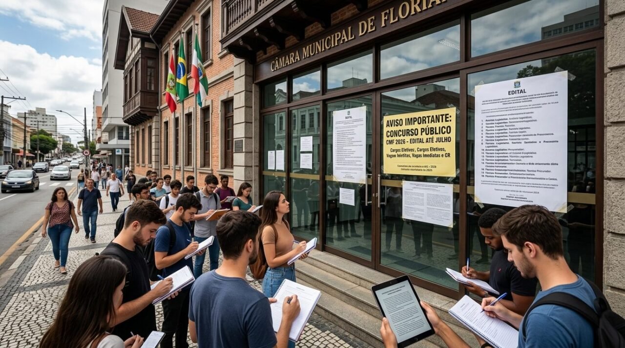 A Câmara Municipal de Florianópolis, em Santa Catarina, confirmou a realização de um concurso público inédito para 2026, encerrando um longo período sem reposição formal de servidores efetivos. O edital deve ser publicado até 20 de julho de 2026, com homologação prevista até 30 de novembro de 2026.