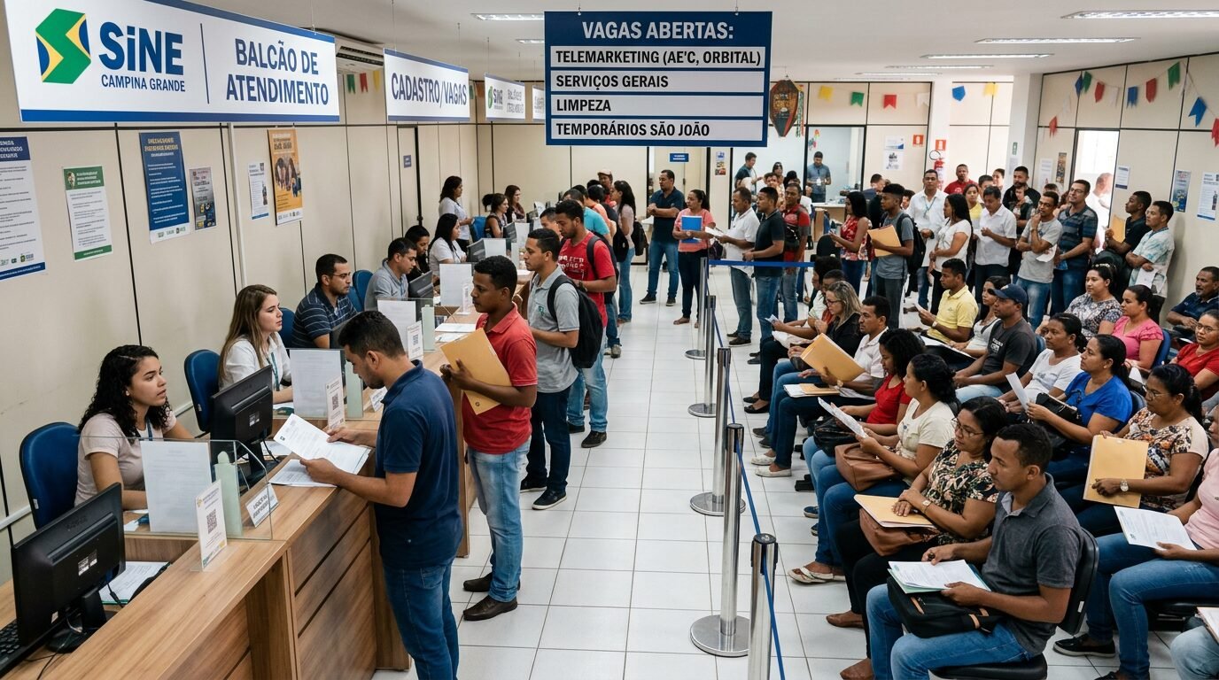Campina Grande abre a semana com 1.613 vagas no Sine, amplia chance de contratação imediata e concentra seleção em telemarketing, limpeza e São João