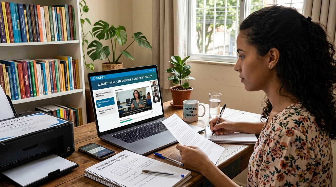 Formação da CAPES oferece 60 horas de estudo a distância em alfabetização, letramento e tecnologias digitais, com certificado gratuito ao final