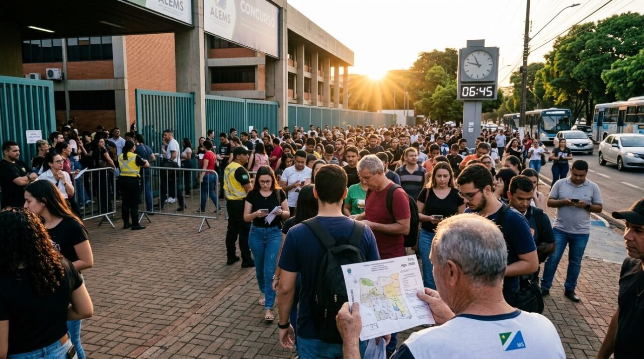 O concurso da Assembleia Legislativa de Mato Grosso do Sul registrou 73,08% de comparecimento nas provas objetivas aplicadas no domingo, 29 de março de 2026. Dos 21.439 inscritos, 15.675 candidatos estiveram presentes.