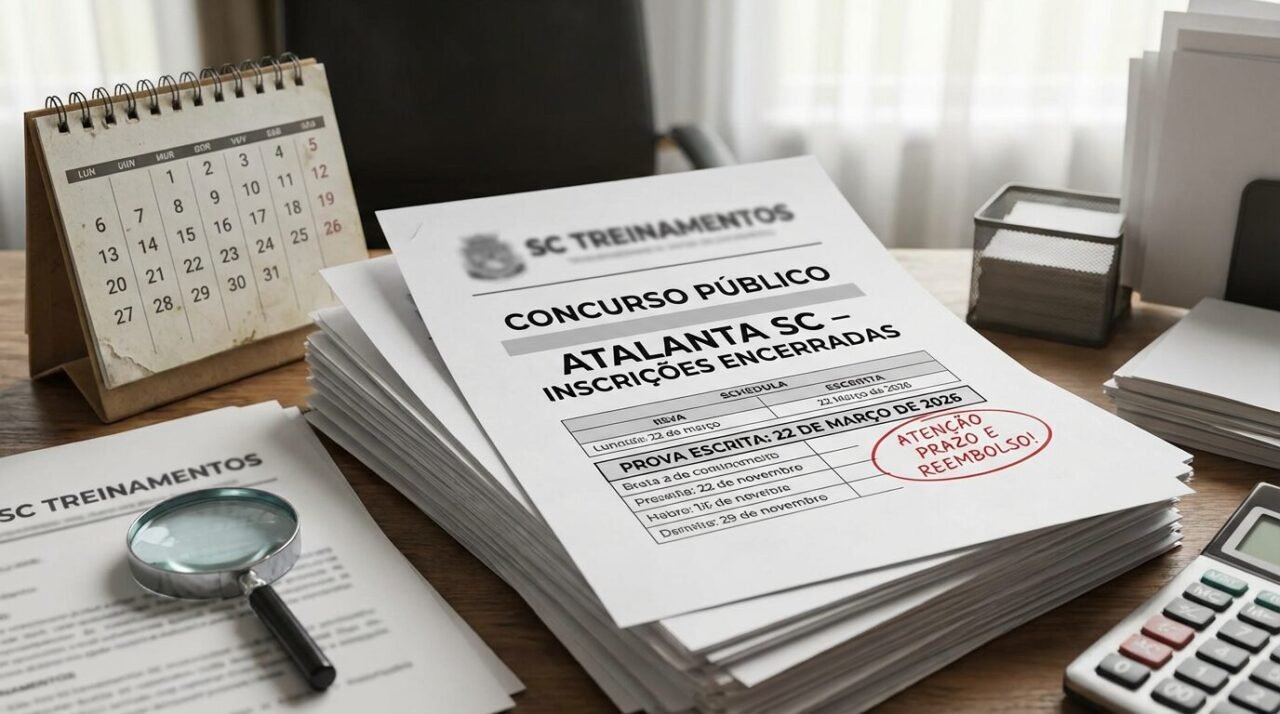 O concurso da Prefeitura Municipal de Atalanta, em Santa Catarina, está com as inscrições encerradas. A seleção segue agora para a etapa de provas, sob organização da banca SC Treinamentos, em calendário já definido. Segundo informações do portal Estratégia Concursos, a aplicação está prevista para 22 de março de 2026.
