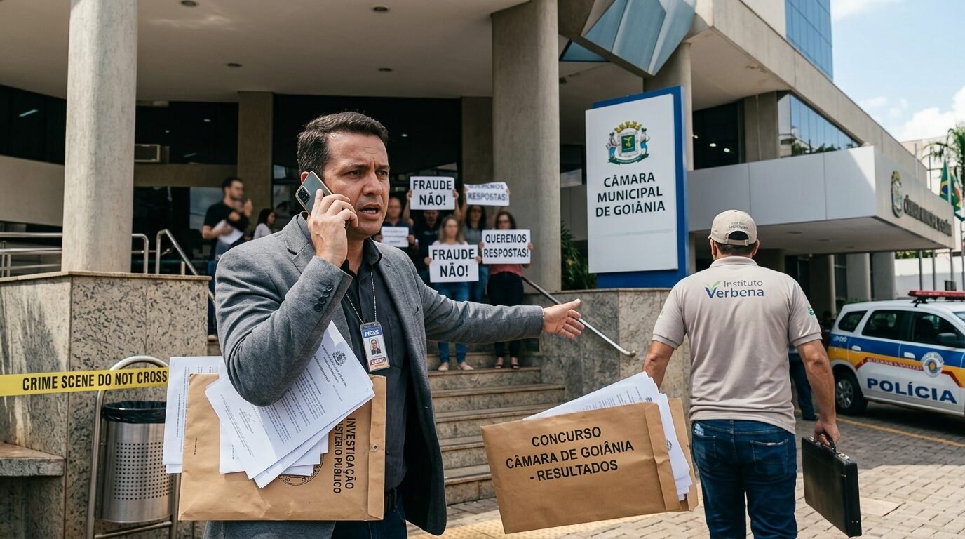 O concurso da Câmara Municipal de Goiânia, realizado em 15 de março de 2026, passou a ser investigado pelo Ministério Público de Goiás depois que um funcionário ligado ao Instituto Verbena, banca responsável pelo certame, apareceu em 1º lugar para o cargo de administrador. A seleção ofereceu 62 vagas e atraiu cerca de 34 mil candidatos.