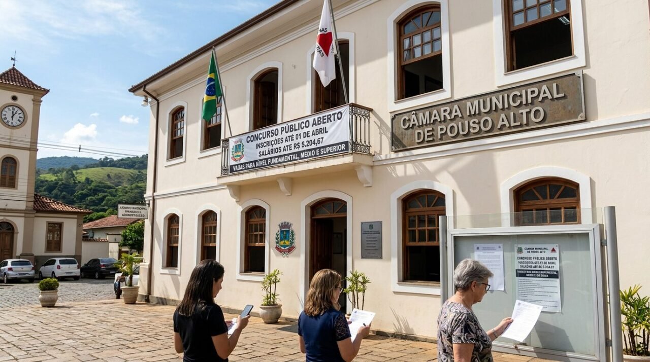 A Câmara de Pouso Alto anunciou o concurso público com três vagas imediatas. As chances contemplam profissionais com formação em diferentes níveis de ensino, o que amplia o alcance da seleção para perfis variados de candidatos.
