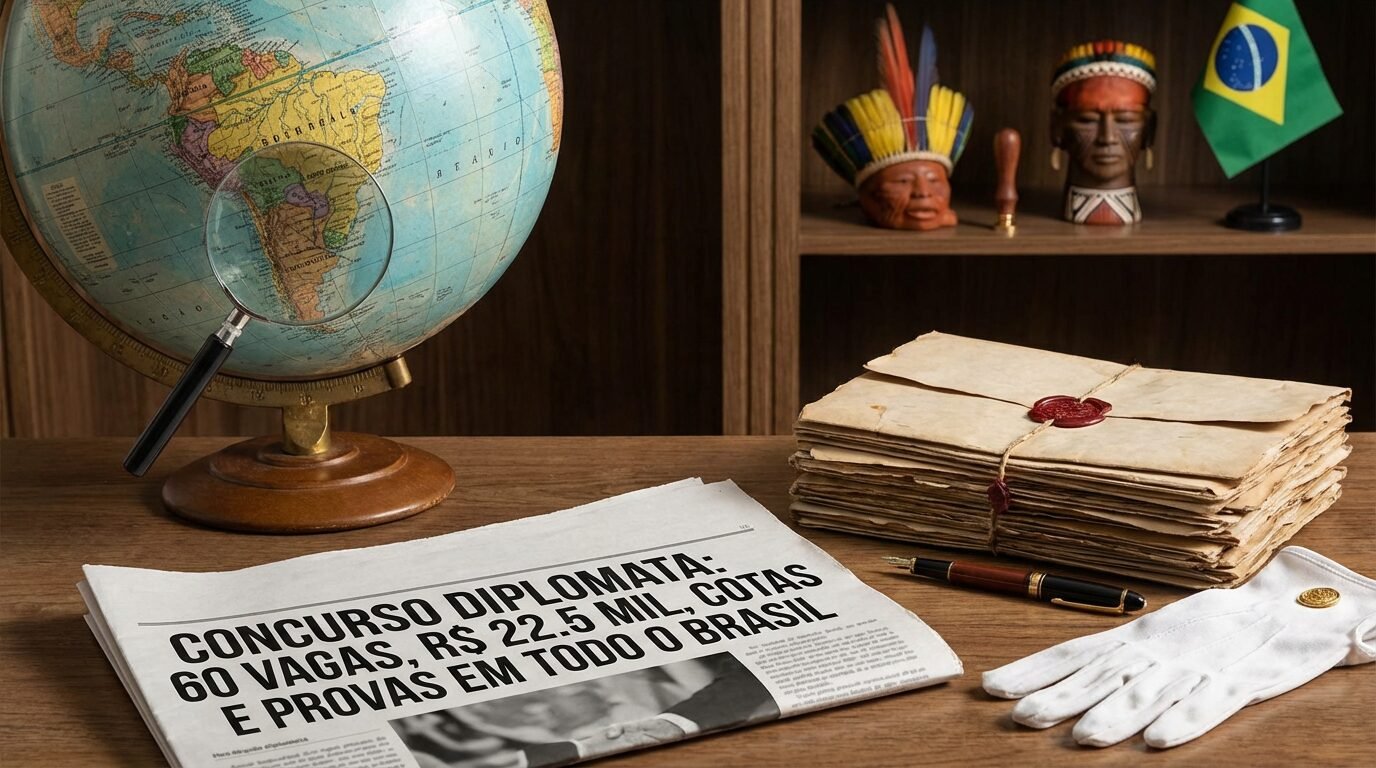 Concurso para diplomata abre 60 vagas com salário inicial de R$ 22,5 mil, cotas para indígenas, PCD, pretos e pardos, e provas em todas as capitais incluindo Campo Grande