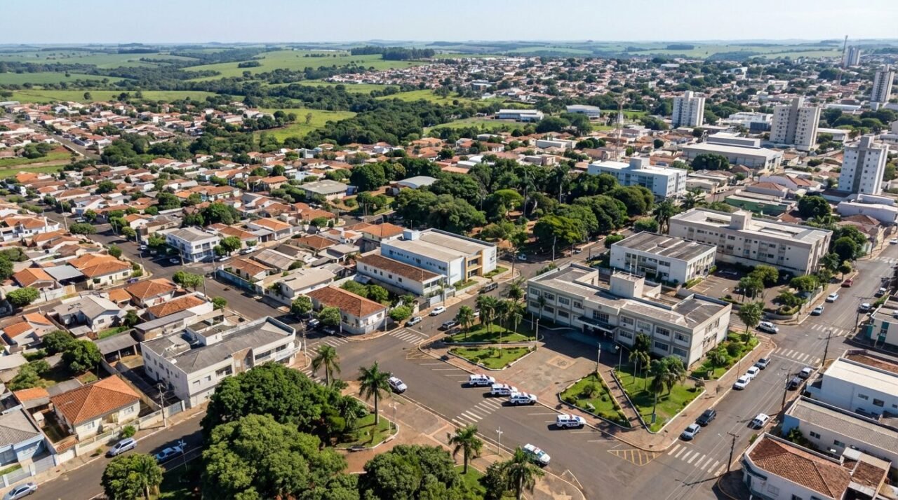 Vista aérea de Lençóis Paulista SP, onde a prefeitura abriu concurso para a Guarda Civil Municipal