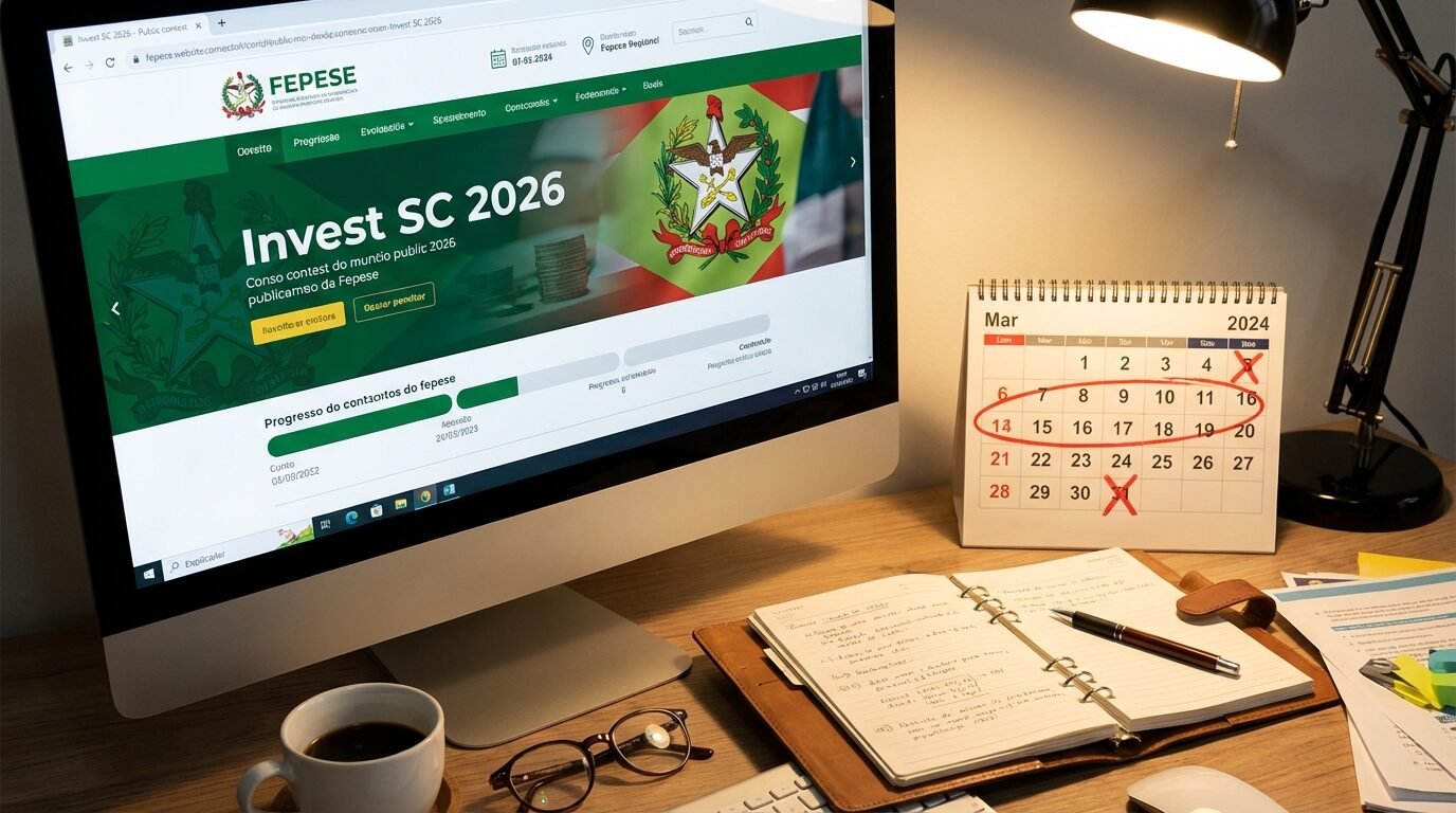 Com salários progressivos por titulação e benefícios sólidos, o concurso Invest SC se posiciona como oportunidade atrativa para quem busca estabilidade no regime CLT em Santa Catarina. A preparação antecipada é decisiva diante da ênfase em conhecimentos específicos e da disputa por pontuação na fase de títulos.