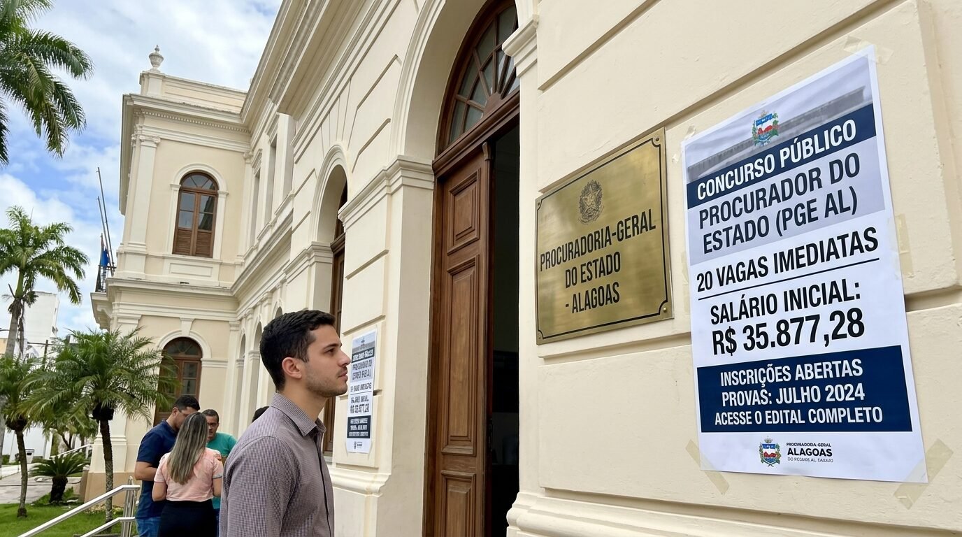 O concurso PGE AL teve edital publicado com 20 vagas para procurador do Estado de Alagoas, em uma seleção que já nasce entre as mais relevantes do ano para a carreira jurídica. A remuneração informada para os aprovados é de R$ 35.877,28, valor que aumenta a disputa entre candidatos de todo o país.