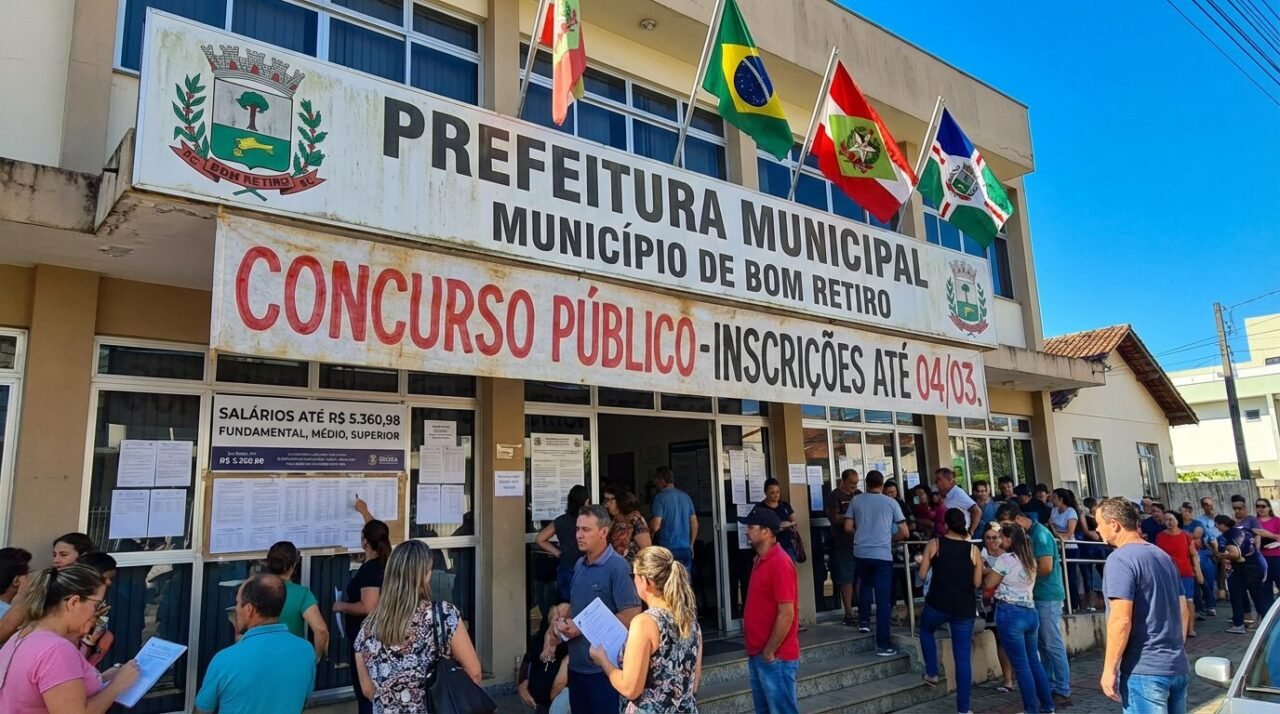 O concurso público da Prefeitura de Bom Retiro, em Santa Catarina, está na reta final de inscrições. O prazo se encerra na quarta-feira, 4 de março de 2026, conforme o edital disponível no portal oficial do município.
