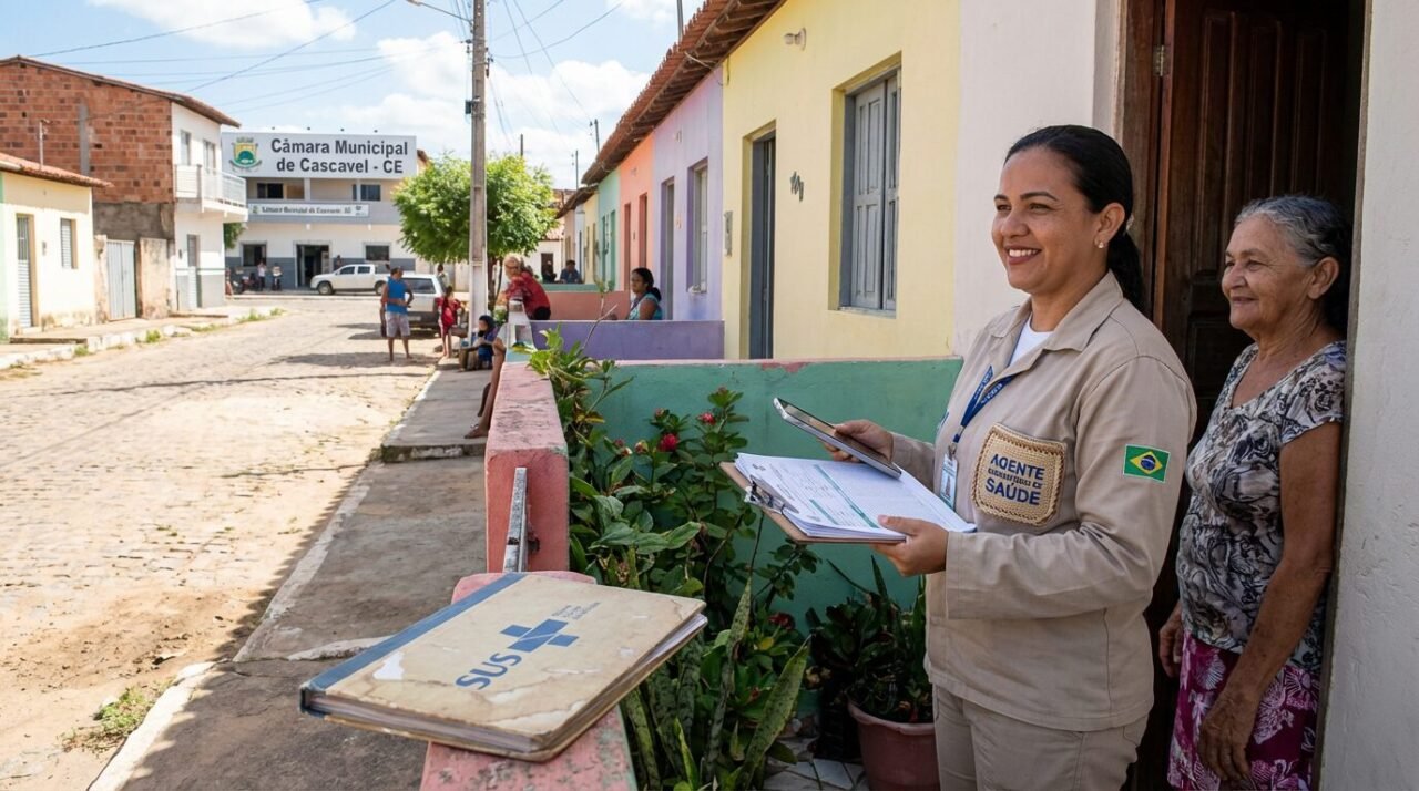 A Prefeitura de Cascavel, no litoral leste do Ceará, publicou o Edital nº 001/2026 com 38 vagas imediatas para agente comunitário de saúde, além de cadastro reserva. A seleção é organizada pelo Instituto Consulpam e prevê vencimento inicial de R$3.242 para jornada de 40 horas semanais.