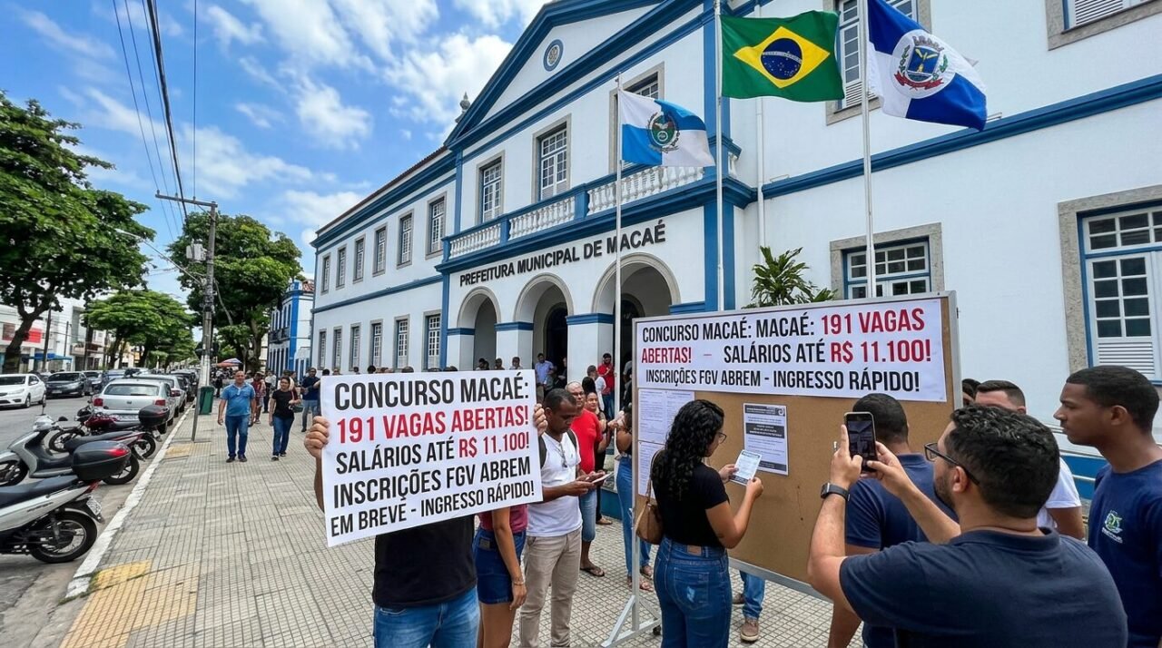Macaé publica edital 01/2026 com 191 vagas e salários de até R$ 11,1 mil, inscrições pela FGV e provas em 21 de junho para ingresso rápido