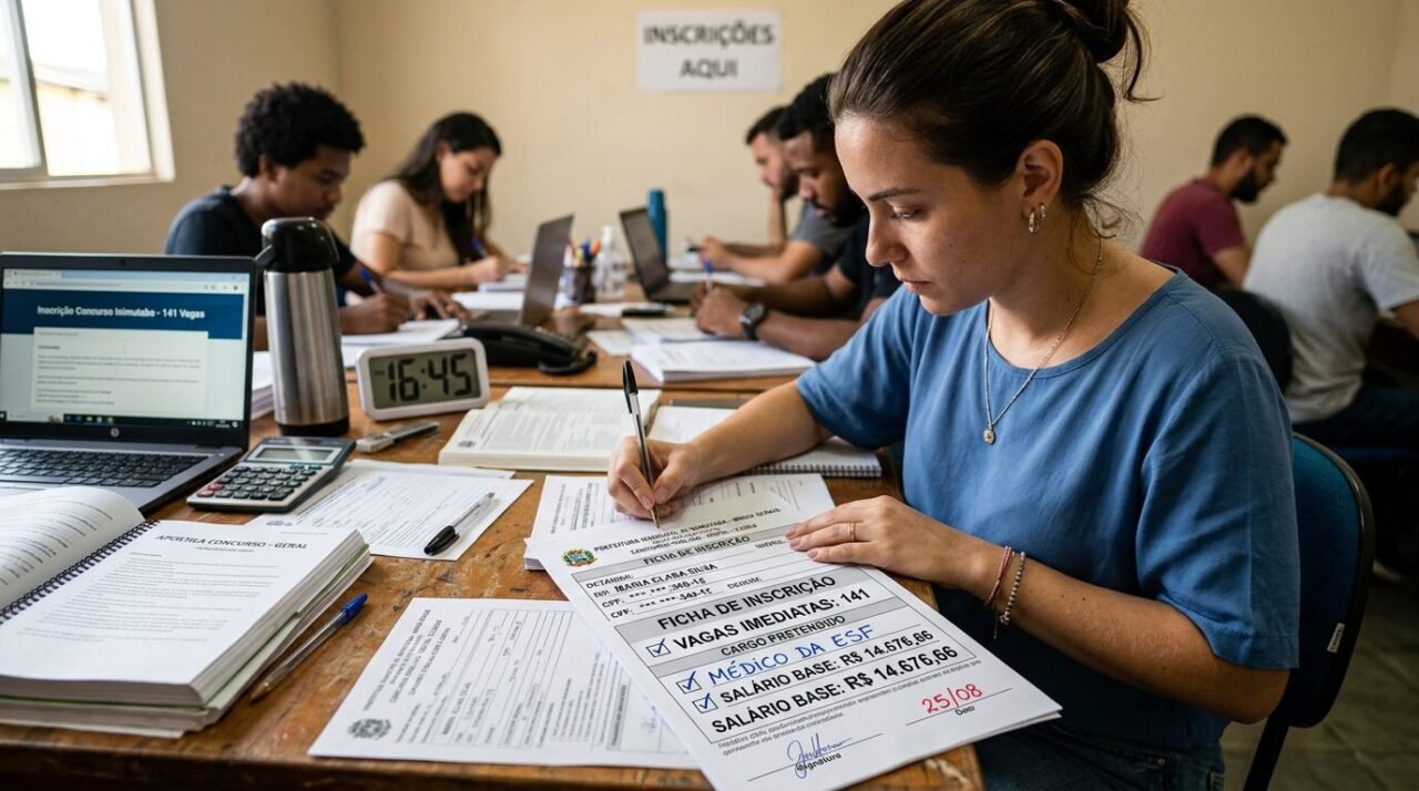 As inscrições para o concurso público da Prefeitura de Inimutaba terminam nesta quinta-feira, 9 de abril de 2026. O edital oferece 141 vagas imediatas, além de cadastro reserva, com salários iniciais entre R$ 1.600 e R$ 14.676,66.