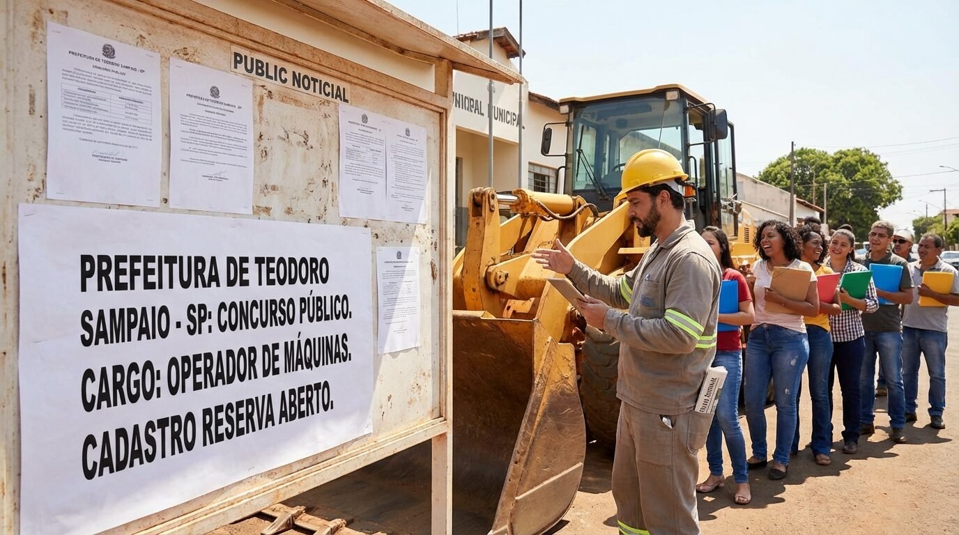 Concurso da Prefeitura de Teodoro Sampaio anuncia cadastro reserva para operador de máquinas, detalha salário, jornada e requisitos oficiais