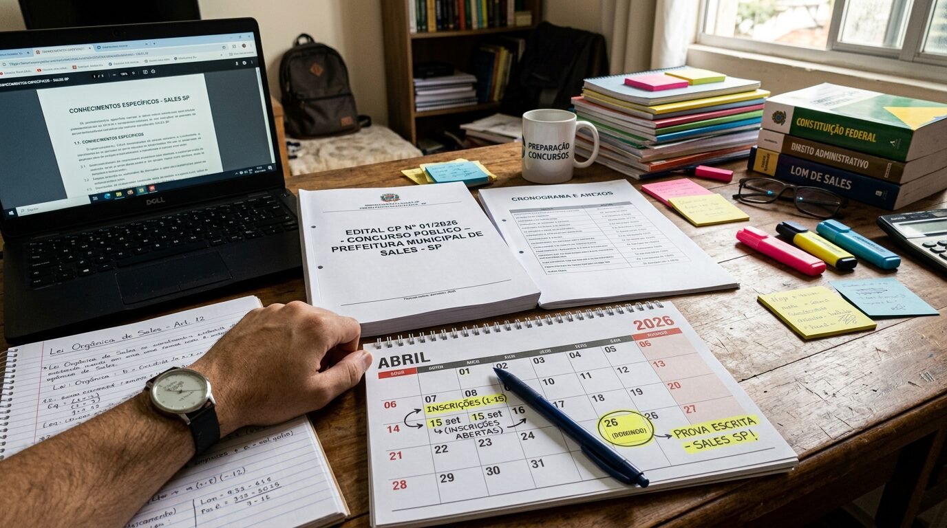 Concurso de Sales SP abre inscrições com poucas vagas, cadastro reserva e prova já marcada para abril de 2026