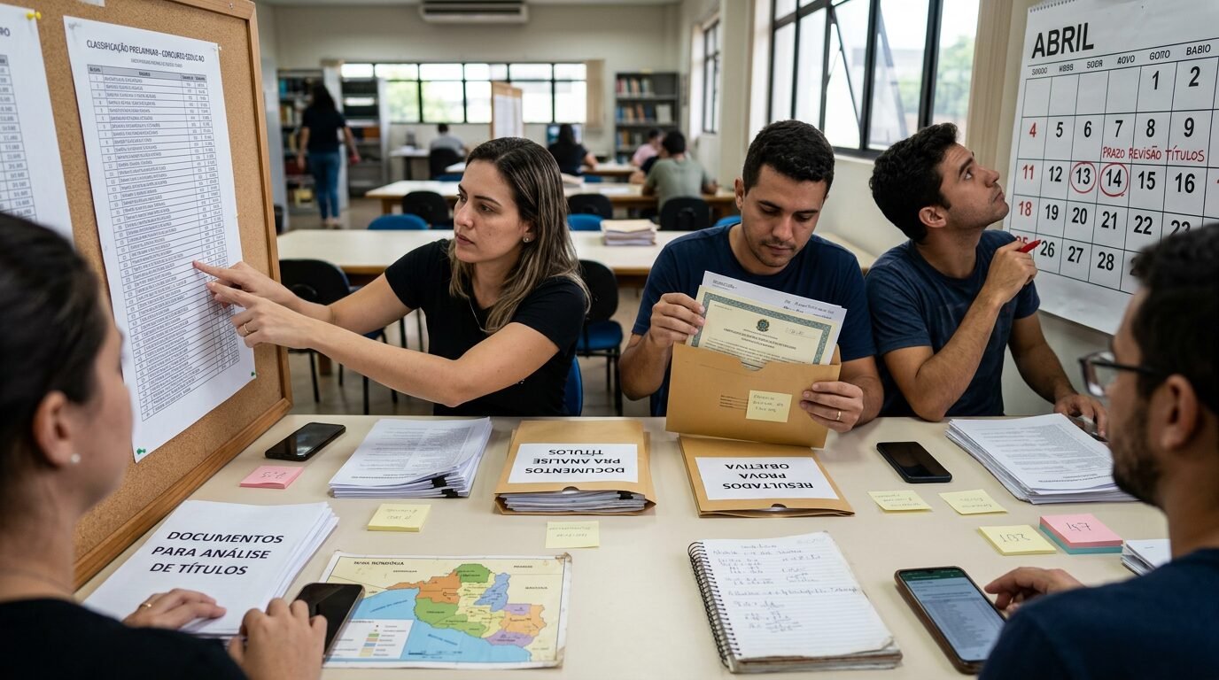 Também por isso, a fase de títulos pode ganhar peso decisivo na classificação. Em concursos para professor, diferenças pequenas entre notas e pontuações complementares costumam alterar posições e influenciar diretamente a lista final de aprovados.