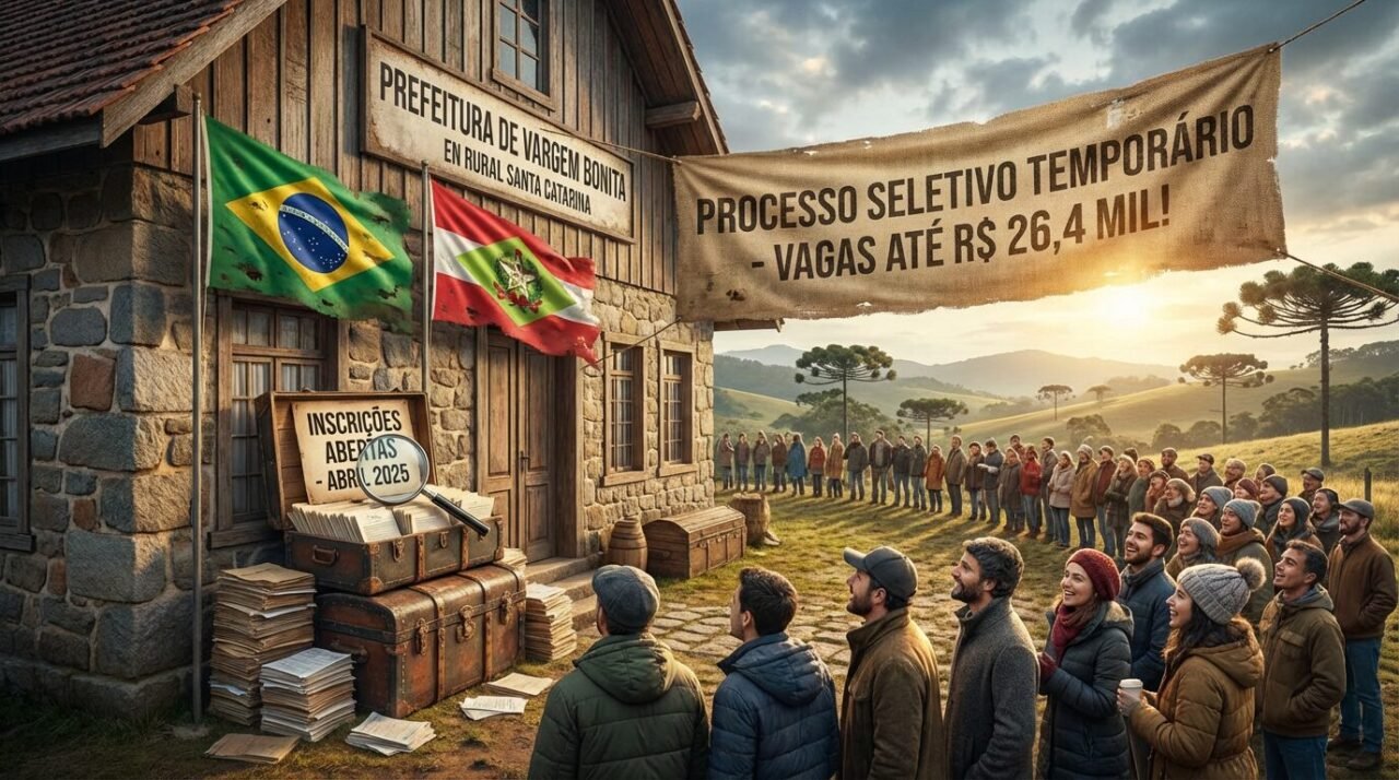 Concurso em Vargem Bonita, cidade catarinense fundada em 1992, abre vagas temporárias com salários de até R$ 26,4 mil e provas em abril de 2025