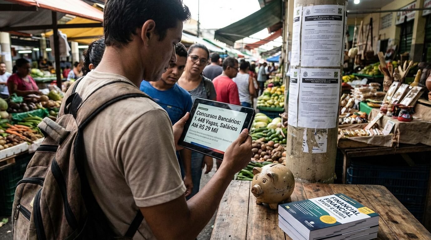 Levantamento indica 1.448 oportunidades em concursos bancários, com remuneração máxima de R$ 29 mil e ofertas em diferentes regiões do Brasil