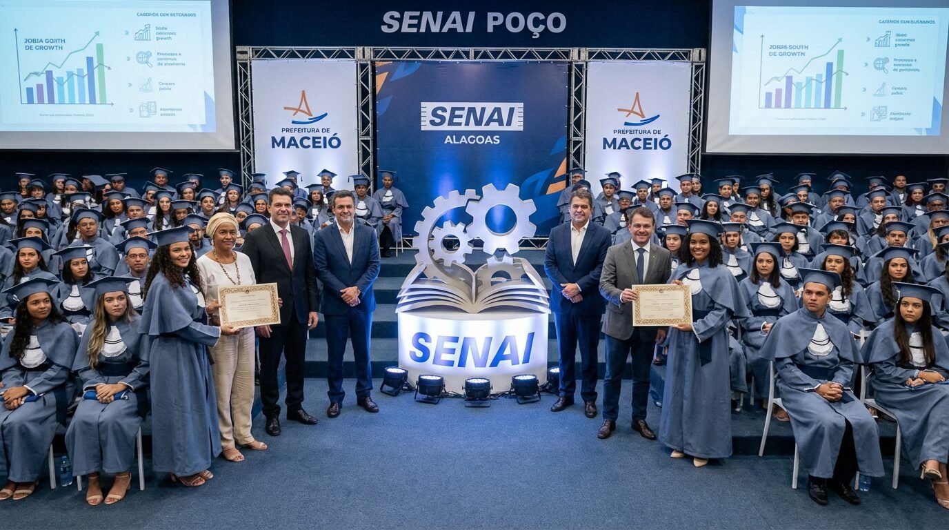 Formatura do Emprega Jovem reúne 285 alunos no SENAI Poço em Maceió e consolida a parceria da Prefeitura e do SENAI Alagoas pela empregabilidade juvenil
