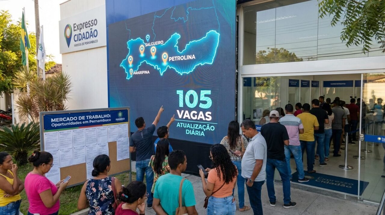 Agência de Trabalho de Pernambuco divulga 105 vagas em Petrolina, Salgueiro e Araripina, com atualização diária e atendimento no Expresso Cidadão