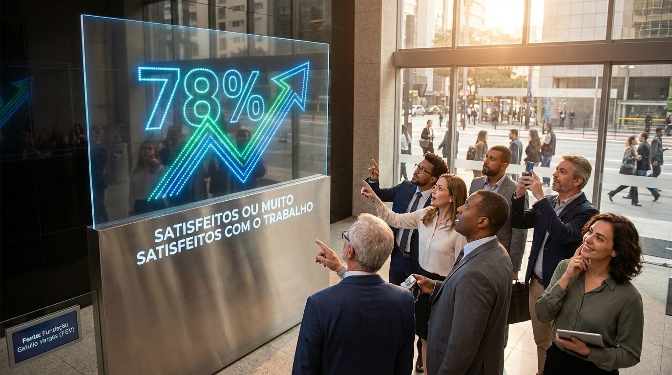 De acordo com as informações divulgadas pela FGV e reportadas pela IstoÉ Dinheiro, a maioria dos entrevistados avalia positivamente o emprego que possui hoje. O destaque está na fatia de 78% que se declara satisfeita ou muito satisfeita, um patamar elevado para pesquisas de clima e percepção no trabalho.