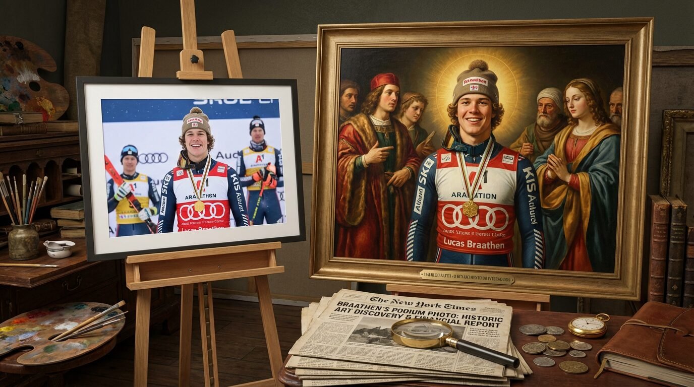 Foto do pódio de Lucas Braathen é eleita a mais bonita dos Jogos de Inverno e vira pintura renascentista em homenagem ao feito histórico do Brasil