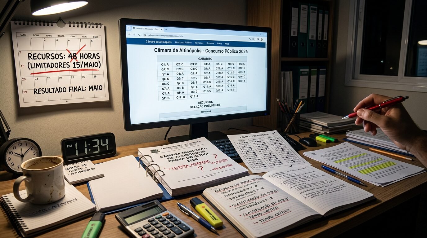 A divulgação do gabarito preliminar do concurso da Câmara Municipal de Altinópolis, em São Paulo, movimentou a noite de 12 de abril e inaugurou oficialmente a fase de recursos. Para quem fez a prova, este é o momento de conferir item por item e calcular se ainda há chance real de avançar na disputa.