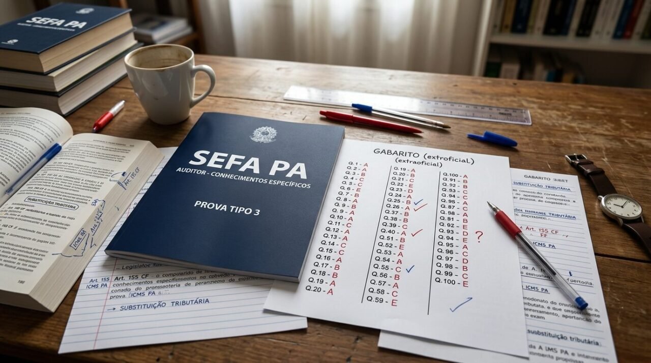 Gabarito extraoficial da Sefa PA para Auditor em conhecimentos específicos antecipa respostas da prova tipo 3 e reduz a ansiedade após a segunda etapa