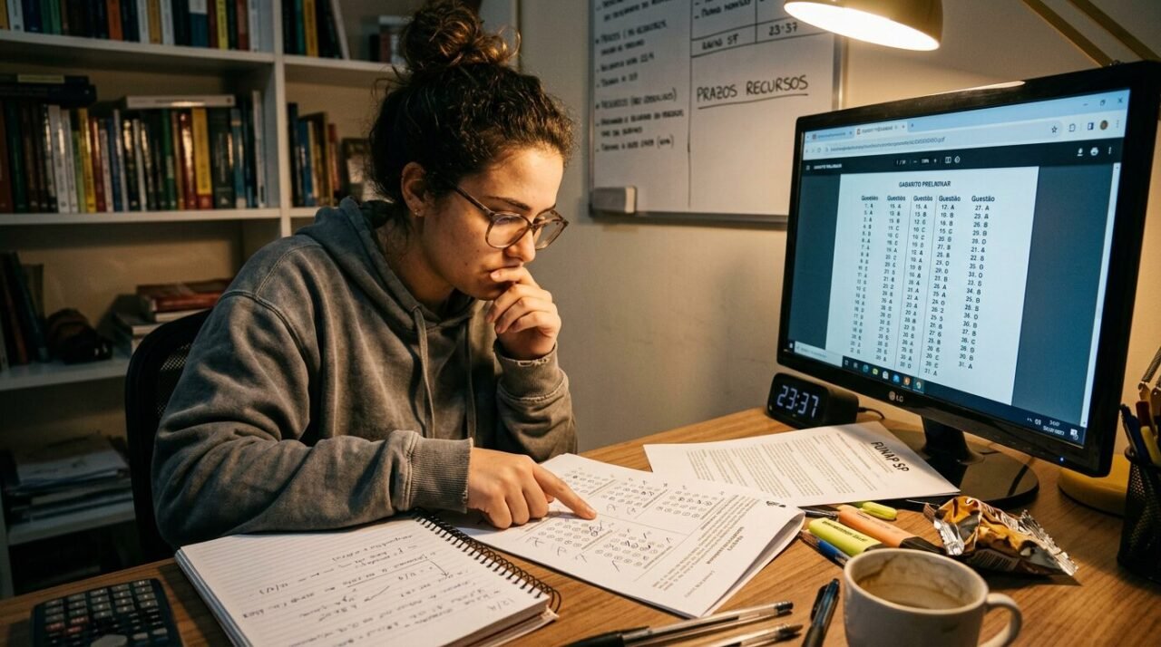 Essa consulta é decisiva porque permite conferir as respostas, fazer uma projeção da pontuação e identificar eventuais erros na formulação das questões ou no espelho preliminar. Para muitos candidatos, esse é o momento em que a disputa começa a ganhar contornos mais reais.