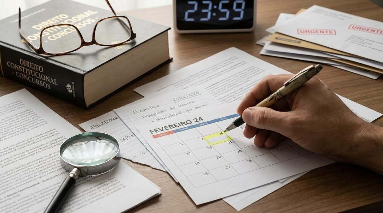 A divulgação do gabarito em 24 de fevereiro e o resultado da objetiva em 11 de março estruturam o calendário de estudos para as discursivas de abril. Entre essas datas, o julgamento dos recursos em 9 de março ajusta eventuais impropriedades apontadas pelos candidatos.