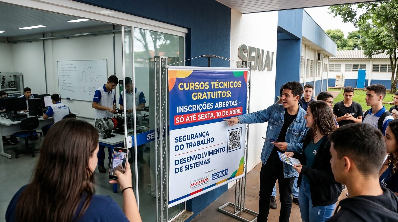 Moradores de Apucarana, no Paraná, têm até esta sexta-feira, 10 de abril, para se inscrever nos cursos gratuitos oferecidos por meio da parceria entre a prefeitura e o Senai Apucarana. As formações disponíveis são os cursos técnicos em Segurança do Trabalho e Desenvolvimento de Sistemas.