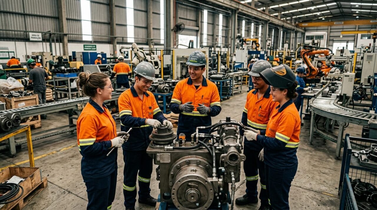 Jovens trabalhadores em ambiente industrial representando a geração de empregos formais em Araras no início de 2026