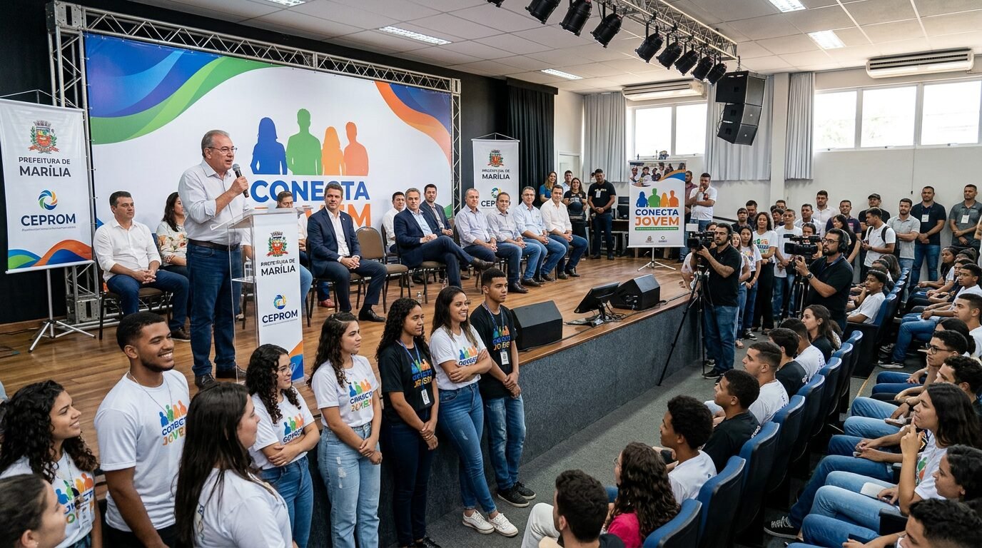 Marília oficializou na manhã de quinta-feira, 26 de março de 2026, o lançamento do Programa Conecta Jovem, uma ação criada para fortalecer a inserção da juventude no mercado de trabalho. O evento foi realizado no Ceprom, Centro Profissionalizante de Marília, por meio da Secretaria Municipal de Assistência Social e Cidadania.