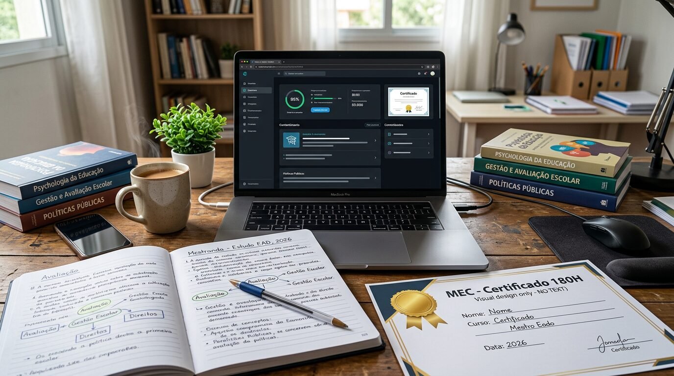 Para emitir o certificado de 180 horas, o aluno precisa cumprir as exigências do cronograma e alcançar a nota mínima nas avaliações online. Depois da aprovação, o documento digital é gerado automaticamente e pode ser impresso ou anexado ao currículo.