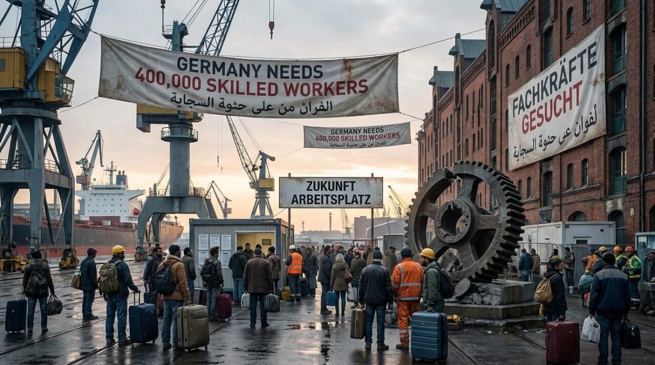 A Alemanha enfrenta uma transição demográfica acelerada. A geração do pós-guerra está se aposentando, enquanto a natalidade permanece baixa há décadas, reduzindo o contingente em idade ativa. Estudos do IAB e da Agência Federal do Trabalho indicam queda estrutural da força de trabalho sem imigração líquida robusta.