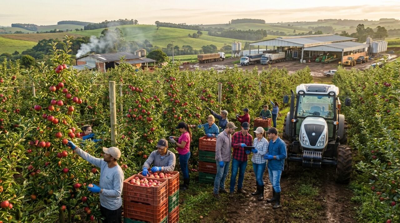 A abertura de vagas foi sustentada por culturas sazonais e pela agroindústria, com destaque para maçã, soja e processamento de fumo. Ao mesmo tempo, segmentos como laranja e conservas de frutas reduziram o quadro de trabalhadores formais no mês.