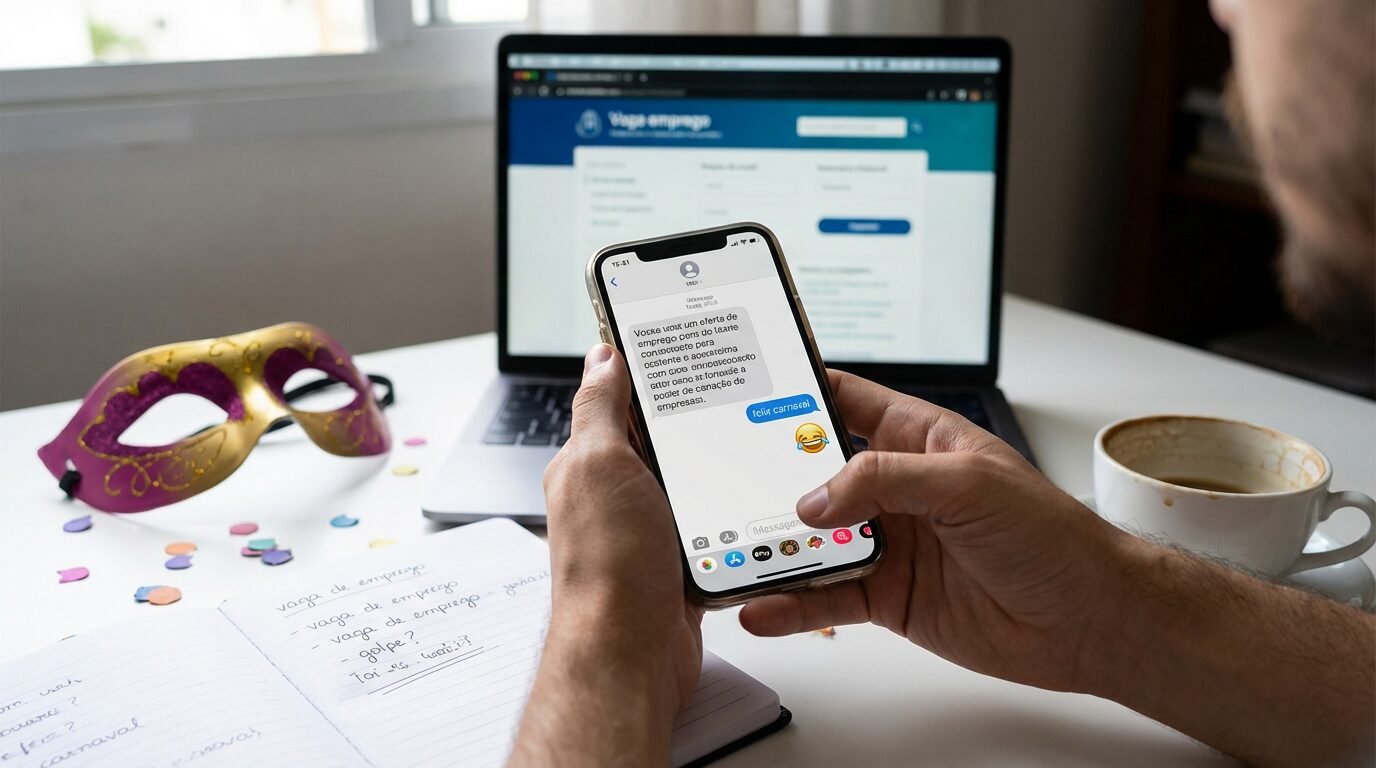 Relato divulgado pelo G1 expõe um caso de golpe de falsa vaga com cobrança antecipada e deboche do criminoso, que encerrou a conversa com ‘feliz carnaval’. O episódio volta a acender o alerta sobre ofertas de trabalho fora de canais oficiais e pressões para pagamento via Pix.