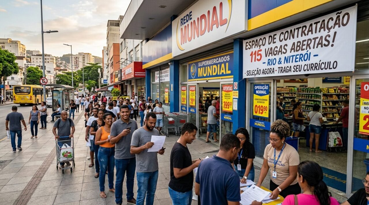 Rede Mundial acelera contratações com 115 vagas no Rio e em Niterói, salários a partir de R$ 1.800 e benefícios ampliam disputa por postos