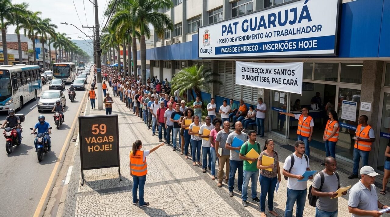 O atendimento do PAT ocorre de segunda a sexta-feira, das 9h às 16h30, e aos sábados, das 9h às 12h30, conforme a Prefeitura. O endereço é Avenida Santos Dumont, 1.586, no Pae Cará, em Vicente de Carvalho.