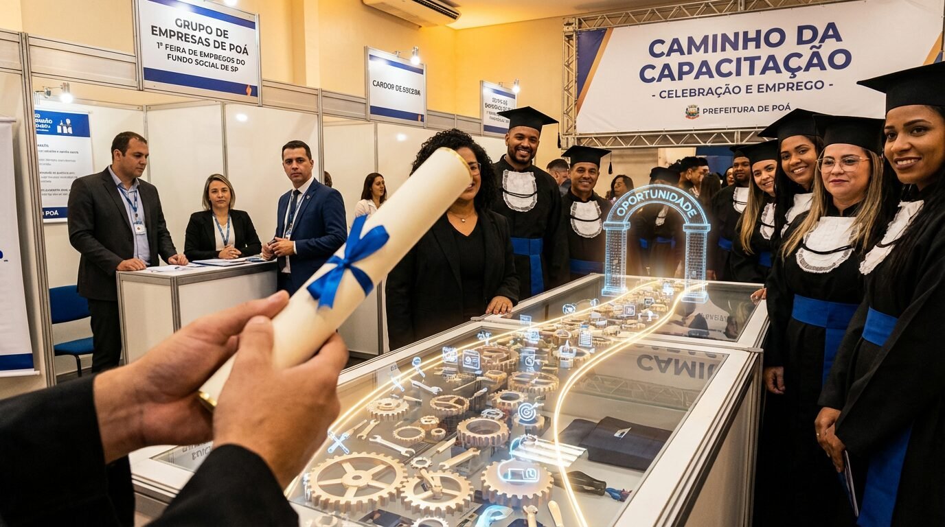 A Prefeitura de Poá participou da formatura de alunos do programa Caminho da Capacitação e da 1ª Feira de Empregos organizada pelo Fundo Social de São Paulo. Segundo a Prefeitura de Poá, a agenda reforça a estratégia de unir qualificação profissional e intermediação de vagas, conectando formandos e empresas.