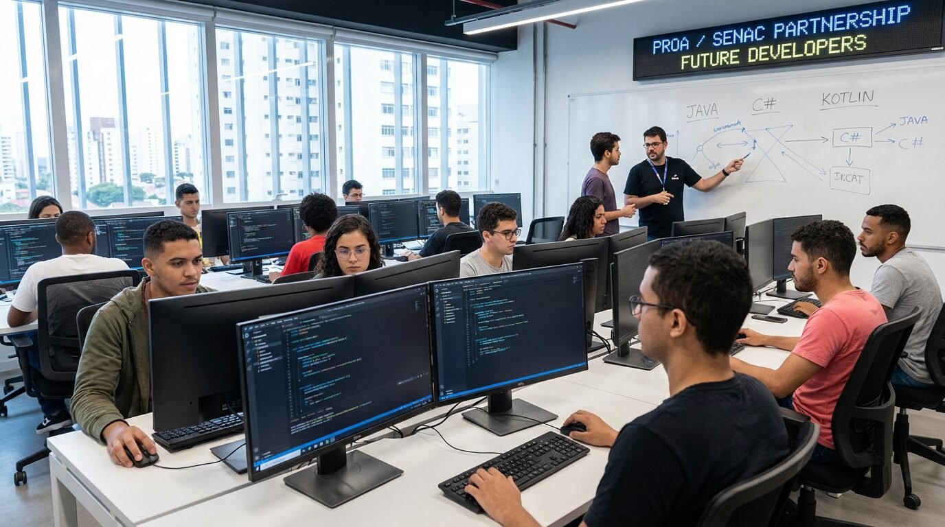 Curso gratuito de programação do Instituto PROA, parceria com o Senac e foco em empregabilidade para quem tem entre 17 e 22 anos