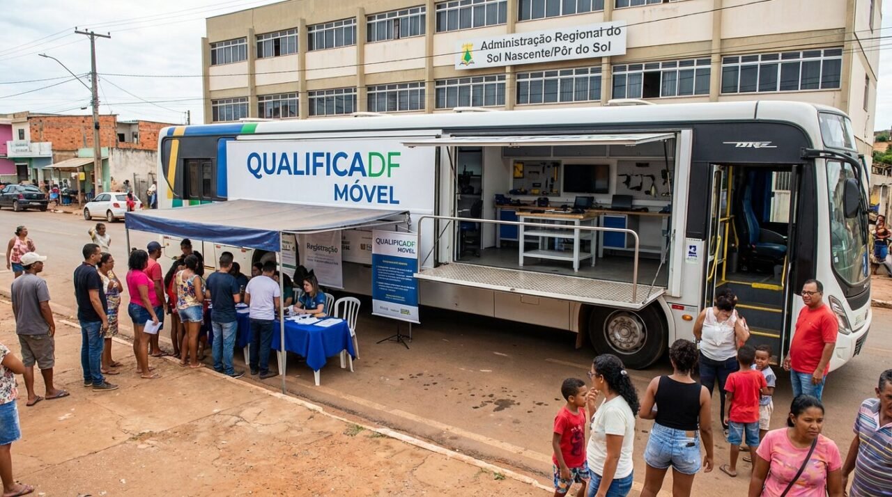 QualificaDF Móvel leva cursos profissionalizantes gratuitos ao Sol Nascente/Pôr do Sol, inscrições vão até quarta-feira 11 e aulas começam no mesmo dia com certificado e materiais sem custo