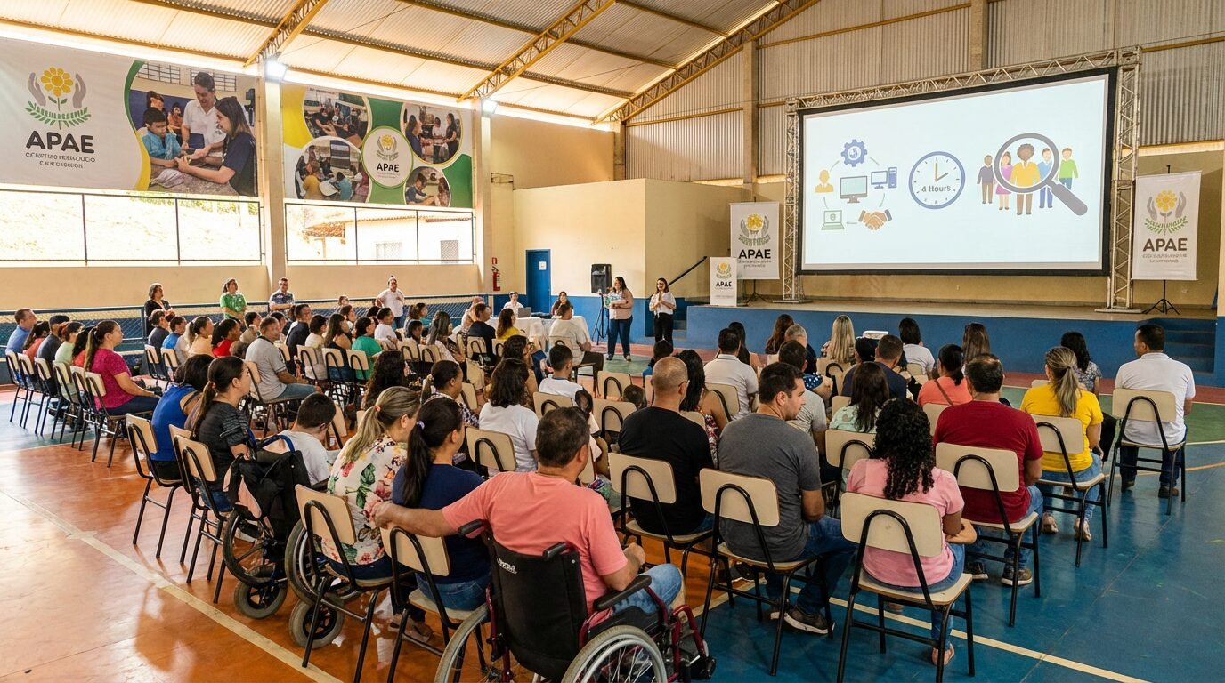 Famílias de pessoas com deficiência terão uma oportunidade de conhecer vagas de trabalho para PCD e tirar dúvidas sobre rotinas e direitos. A APAE de São Gabriel do Oeste promove uma reunião aberta no dia 20 de março, às 17h15, na quadra da instituição. A apresentação terá foco na inclusão produtiva com informações claras sobre atividades, benefícios e suporte.