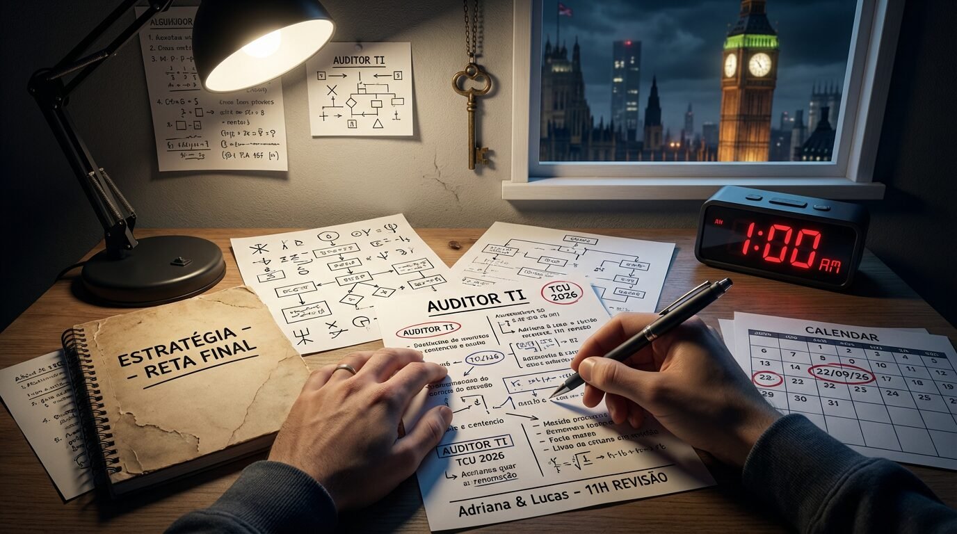 Concorrência alta e ansiedade na véspera do TCU 2026, revisão intensiva do Estratégia com mais de 11 horas promete acelerar a reta final e garantir foco em Auditor de TI