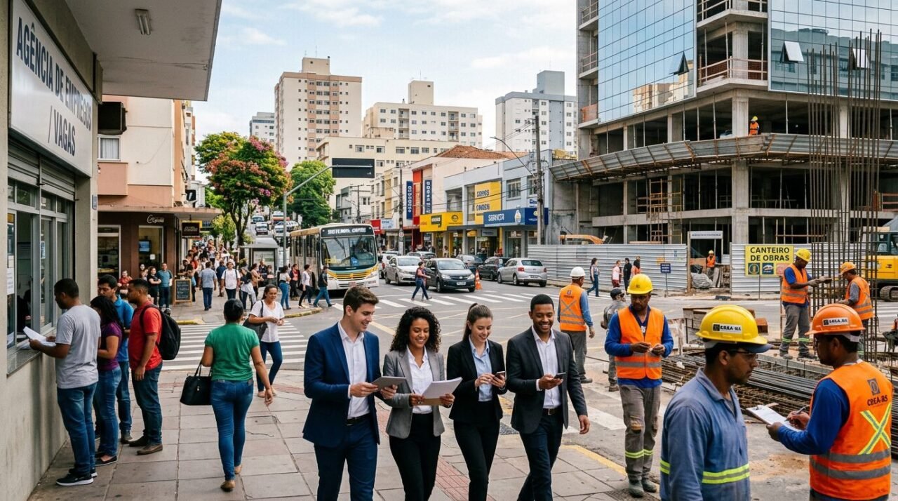 O desempenho recente mostra que a economia local voltou a contratar, ainda que de forma moderada. O dado mais relevante é que a reação veio puxada por setores com forte peso na estrutura econômica da cidade, especialmente serviços e construção civil.