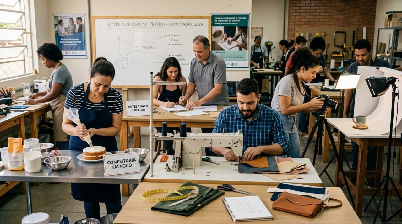Os cursos envolvem áreas com procura constante no mercado, como beleza, alimentação, artesanato e produção digital. Além da parte técnica, os participantes terão contato com temas como formação de preços, organização da produção, atendimento ao cliente e estratégias de mercado.