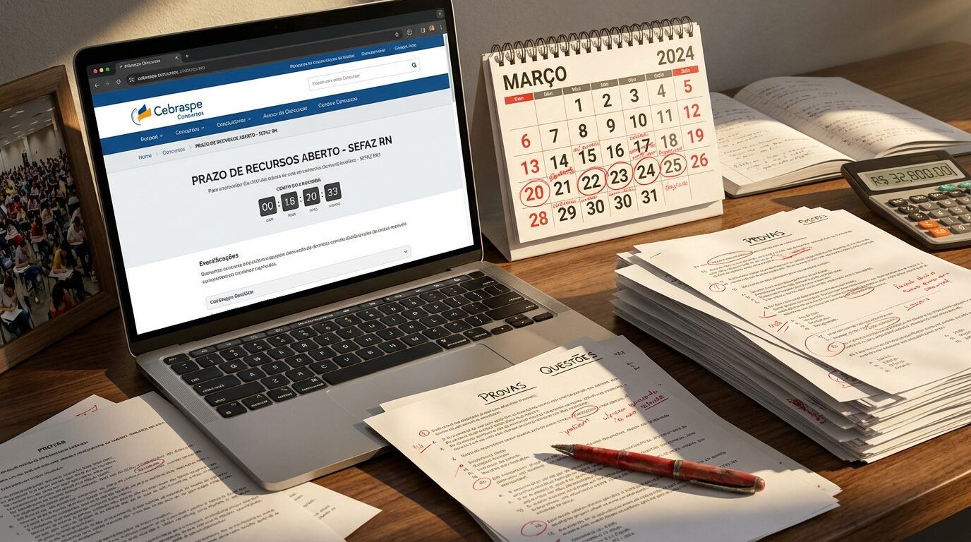 Prazo aberto para recursos do gabarito preliminar da Sefaz RN, com envio no site do Cebraspe até 26 de março