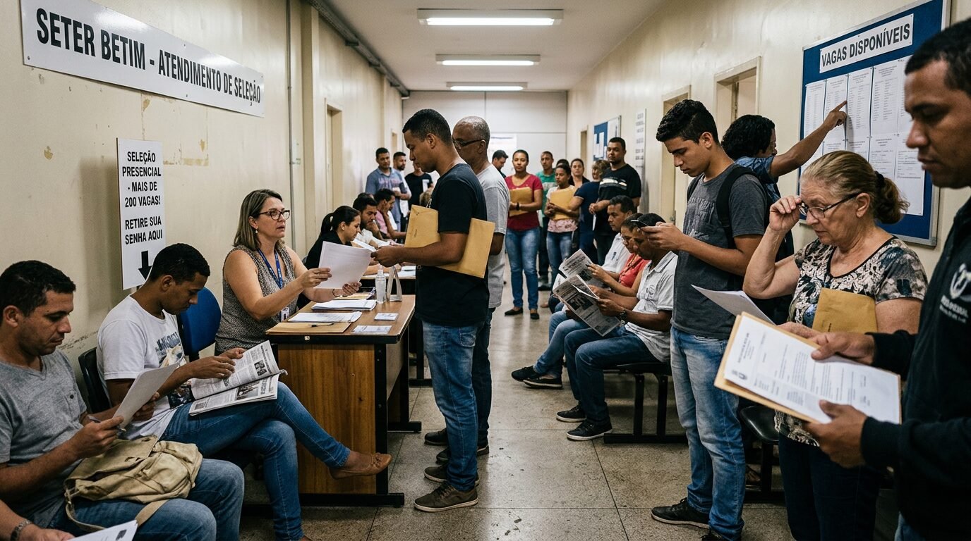 Seter Betim concentra 278 vagas em 36 profissões nesta terça-feira, ampliando a busca por emprego com seleção presencial no bairro Angola