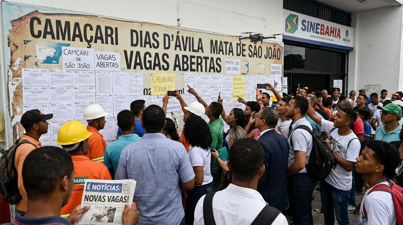 SineBahia abre oportunidades de emprego em Camaçari, Dias d’Ávila e Mata de São João com salários de até R$ 3.532, atendimento por senha e exigência de experiência em diversas funções